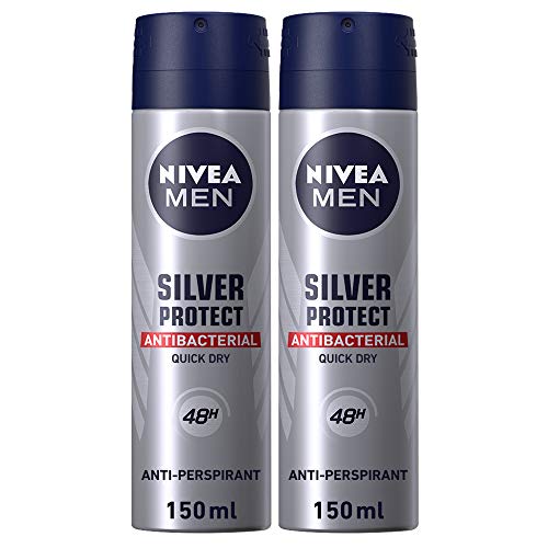 NIVEA - نيفيا سيلفر بروتكت للرجال مضاد للتعرق للبكتيريا بخاخ 150 مل عبوة من قطعتين عديم الرائحة