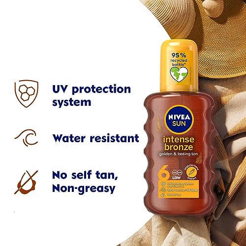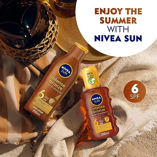 NIVEA - بخاخ زيت تسمير البشرة صن كاروتين مع فيتامين E وزيت الجوجوبا معامل الحماية من الشمس 6 من نيفيا، سعة 200 مل، من قطعتين