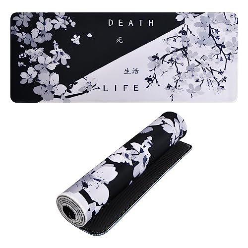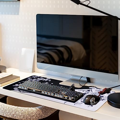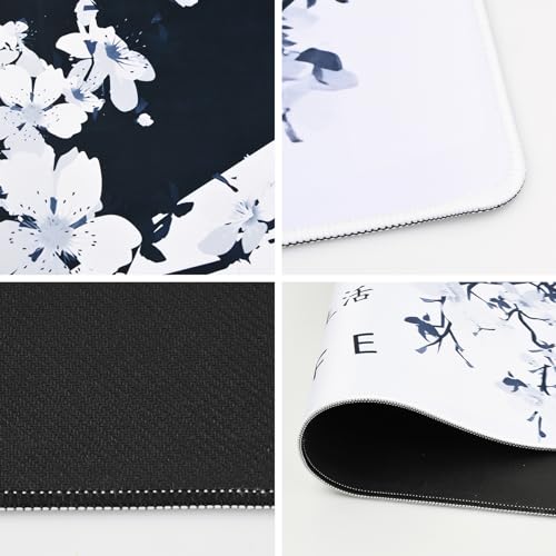 Nivofu - قاعدة ماوس كبيرة جدًا للألعاب ولوحة المفاتيح بحواف مخيطة وقاعدة مطاطية غير قابلة للانزلاق للألعاب أو العمل المكتبي من نيفوفو، مقاس 80 × 30 سم، لون أسود
