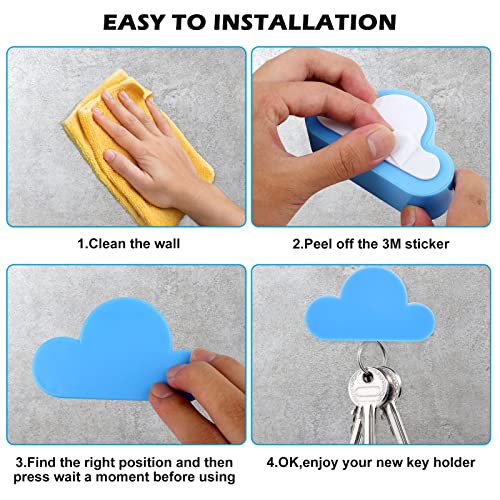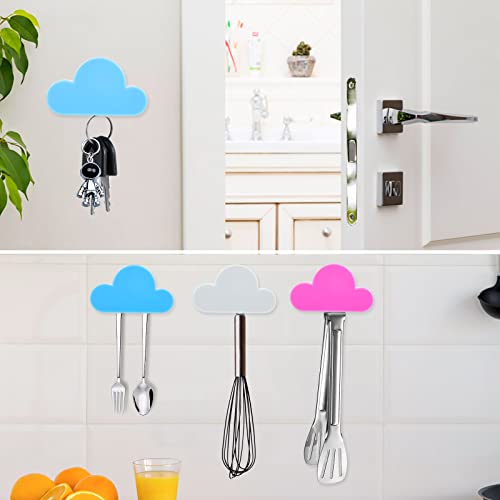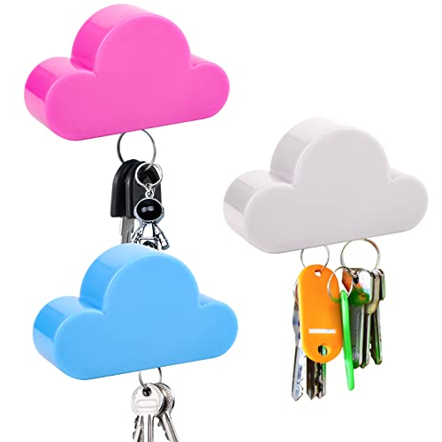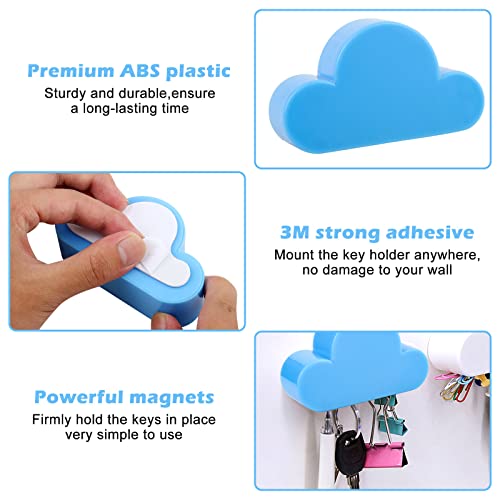 Nizirioo - حامل مفاتيح مغناطيسي - عبوة من 3 صناديق مفاتيح مغناطيسية على شكل سحابة، منظم حلقة مفاتيح ذاتية اللصق، حامل مفاتيح حائط لتزيين مدخل الباب والمطبخ وغرف النوم، مننيزيريو، أكريلونيتريل بوتادين ستايرين
