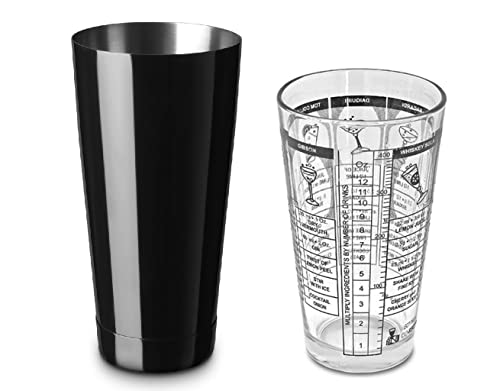 NJ OVERSEAS - طقم شيكر كوكتيل بوسطن أسود من قطعتين من ان جيه اوفرسيز، مجموعة شيكر احترافية ثقيلة للنادل: مجموعة 1