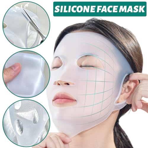 NJCXOLA - قناع وجه سيليكون قابل لإعادة الاستخدام ومقاوم للماء لترطيب الوجه من ان جي سي اسكولا - 2 قطعة