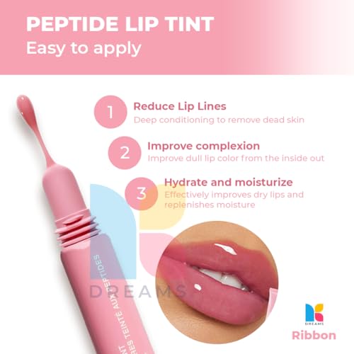 NK DREAMS - تنت شفاه معالج بالببتيد، لون شفاف بلمسة نهائية مرطبة، ملمع شفاه للنساء والبنات يدوم 12 ساعة متعدد الاستخدامات مثل مرطب الشفاه من ان كيه دريمز، 10 مل (لون ريبون، 10 مل (عبوة من قطعة واحدة))