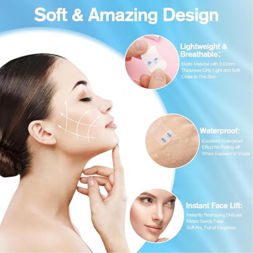 - 【جيد التهوية ومقاوم للماء】- شريط شد الوجه الخاص بنا هذا مصنوع من مواد مضادة للحساسية طبيعية وآمنة ولطيفة وغير مسببة لحدوث التهيجات في البشرة. الشريط نفسه مرن وجيد التهوية ومقاوم للماء. مع شريط شد الوجه هذا، يمكنك وضع مكياجك لمدة تصل إلى 8 ساعات دون قلق وبدون أي عبء على بشرتك. أظهري أناقتك