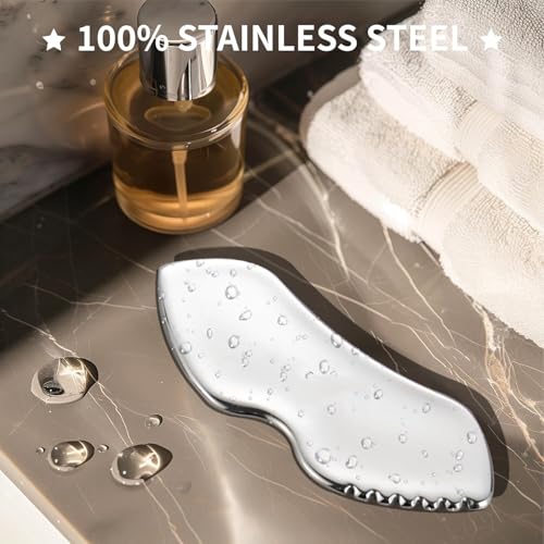 - 💚【ينعش بشرتك】 أداة الوجه غوا شا المصنوعة من الستانلس ستيل تعزز روتين العناية بالبشرة. جرب تأثيرات الرفع والشد لجوا شا المعدنية الخاصة بنا على وجهك ورقبتك مع تقليل الخطوط الدقيقة والتجاعيد. يعمل كأداة تدليك للتصريف اللمفاوي.