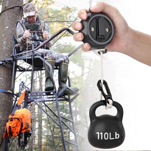 - 【رفع بدون مجهود】-- عزز تجربة الصيد الخاصة بك مع بكرات حبل الرفع القابلة للسحب، المصممة لرفع ملحقات صيد القوس بسهولة وسلاسة إلى حامل شجرة، مما يوفر لك الطاقة القيمة أثناء