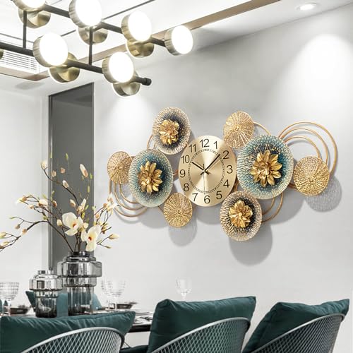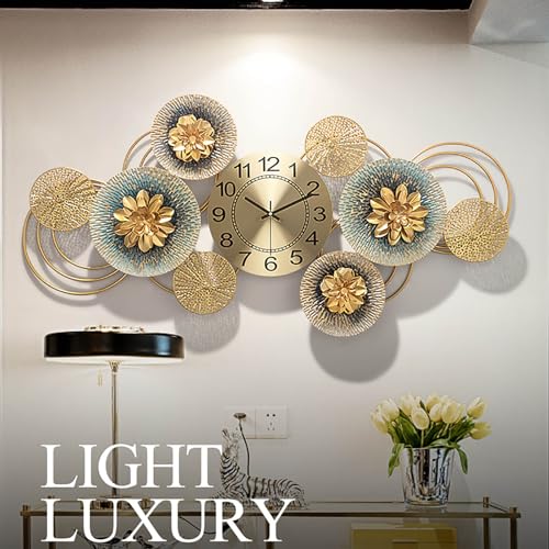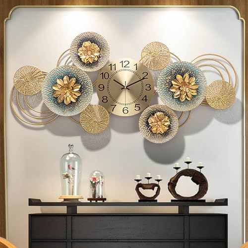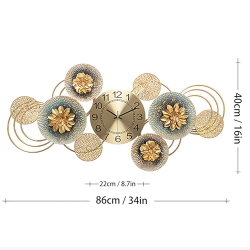 NNYCC - ساعة حائط من ان واي سي بتصميم زهرة معدنية ذهبية 86 سم، صامتة فني عصري لغرفة المعيشة وغرفة النوم والمطبخ، L، تناظري، شفاف