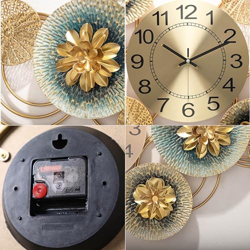 - > جودة المعدن: ساعة الحائط الذهبية على شكل زهرة مصنوعة من معدن عالي الجودة، ديكور أنيق مصنوع بدقة من الحديد المطاوع. مينا الساعة 22 سم أملس وواضح، والعقارب قوية، وليس من السهل كسرها، متينة ودقيقة.