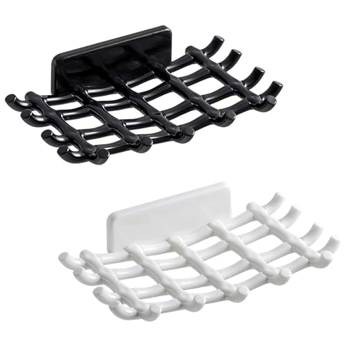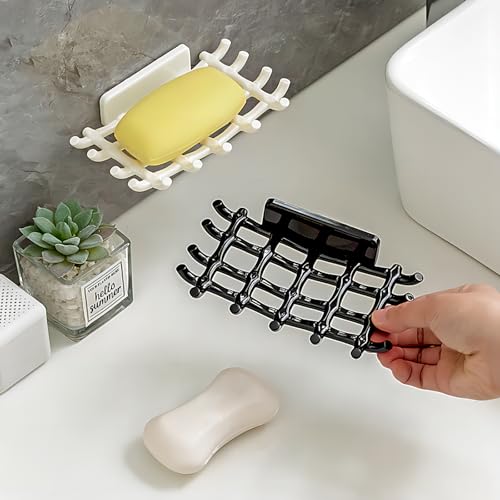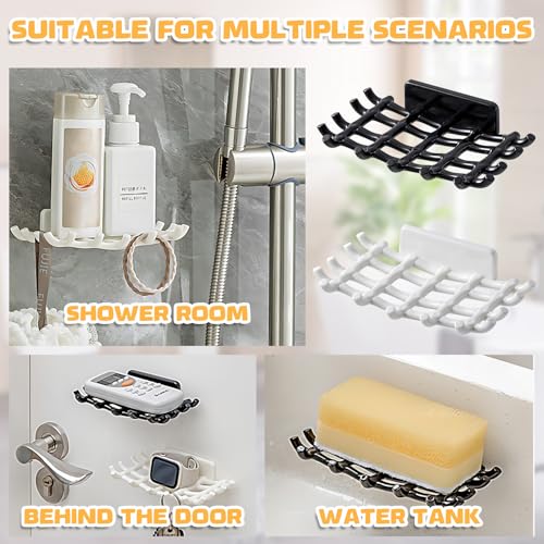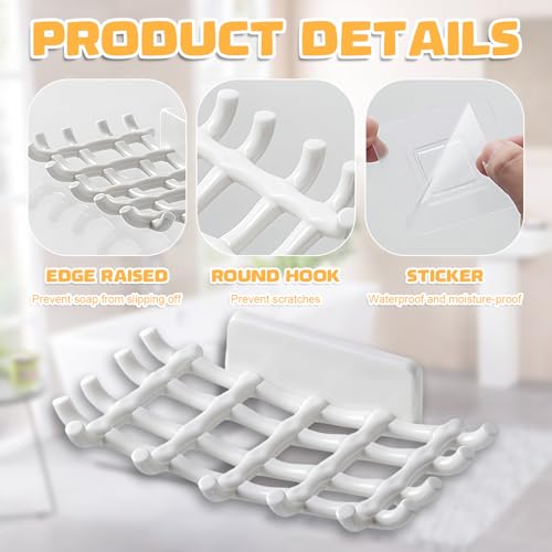 - 【تصميم بسيط وعصري】تركيب شريط لاصق شفاف غير مرئي، مناسب للحمام أو المطبخ أو السيارة الترفيهية أو غرفة الغسيل أو المخزن، حامل الصابون عصري وأنيق، يأتي مع خطافات خاصة لتعليق شفرات الحلاقة والمناشف وإسفنجات الحمام، حل مثالي للاستحمام والمطابخ والمغاسل والمركبات الترفيهية وأكثر من ذلك