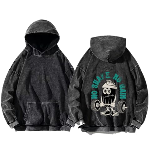 Generic - سويت شيرت بغطاء للرأس بدون اهتزاز، ظهر مغسول