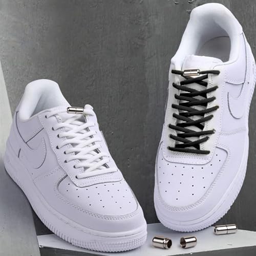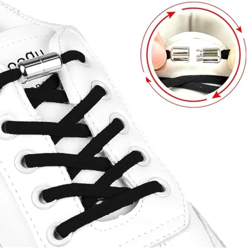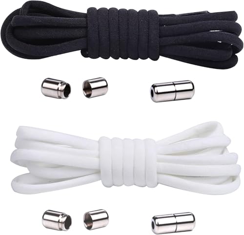 Generic - مجموعة اربطة احذية مرنة بدون ربط مع حلقات معدنية، اسود وابيض، زوجان