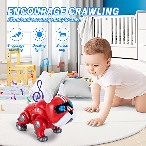 Noetoy - ألعاب أطفال من 6 إلى 12 شهر، كلب روبوت للحيوانات الأليفة الزاحفة للأطفال، لعبة موسيقية على البطن مع إضاءة ليد، ألعاب رائعة للمشي والرقص الكهربائي، هدية للأطفال الرضع الأولاد والبنات من نوتوي