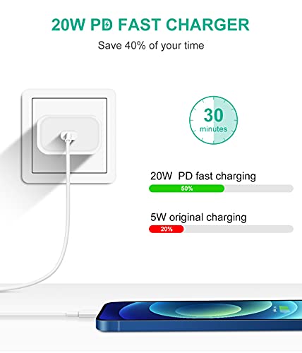 - 【شحن عالي السرعة بقوة 20 وات】اشحن موبايل ايفون 12 من 0% إلى 50% في غضون 30 دقيقة فقط. كابل ابل USB نوع C إلى لايتنينج أسرع بثلاث مرات تقريبًا من الشاحن العادي بقدرة 1 امبير. كما أنه يدعم معدلات نقل البيانات حتى 480 ميجابت في الثانية. مثالي لشحن أجهزة iOS الخاصة بك.