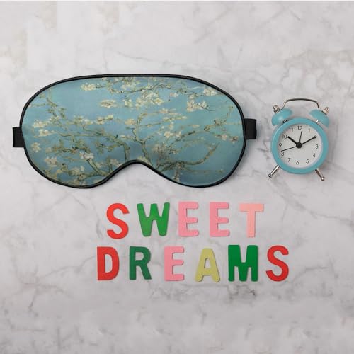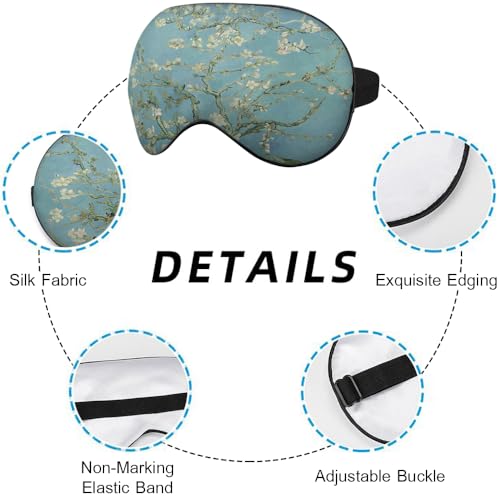 NOHSHE - قناع عيون للنوم بتصميم زهرة اللوز، قناع عين حريري ناعم للنوم للرجال والنساء والأولاد والبنات على متن الطائرة والسفر مع حزام مطاطي من نوهشي