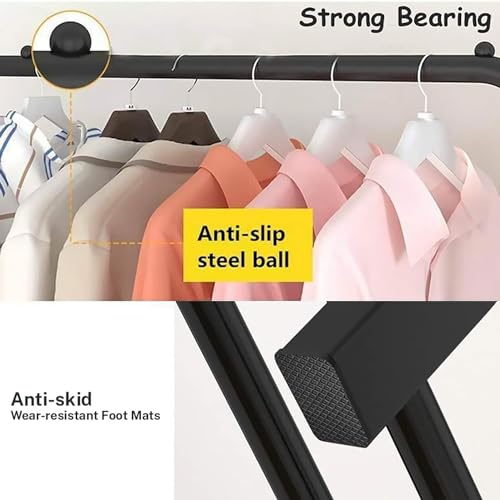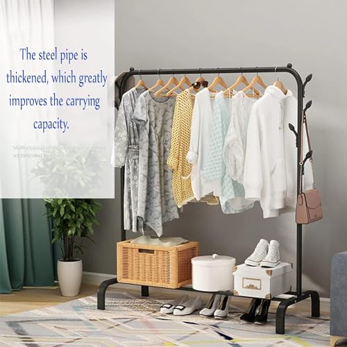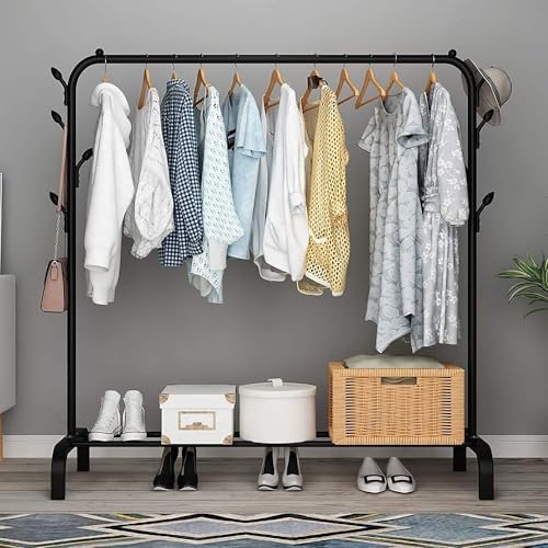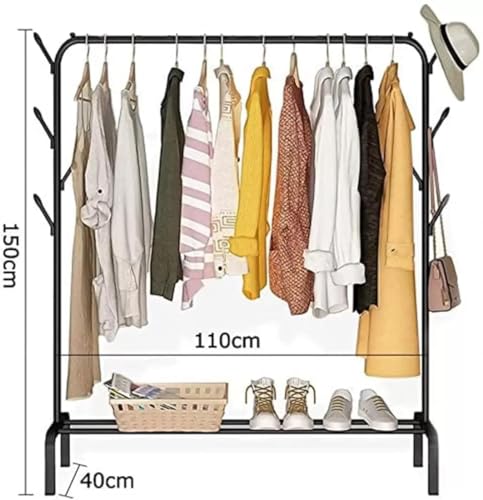 NOJTI - حامل ملابس من نوجتي، شماعة معاطف معدنية متعددة الأغراض، رف ملابس، منظم تخزين موفر للمساحة، رف معاطف، رف ملابس لغرفة النوم وغرفة المعيشة (أسود، حامل ملابس بطبقة واحدة)
