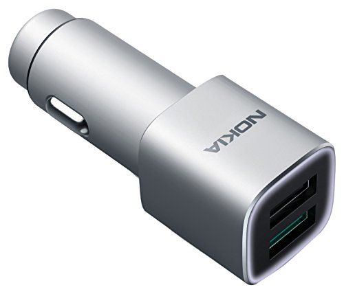 Nokia - شاحن سيارة بمنفذ USB مزدوج بتقنية الشحن السريع 3.0 متوافق مع DC-801 من نوكيا، فضي