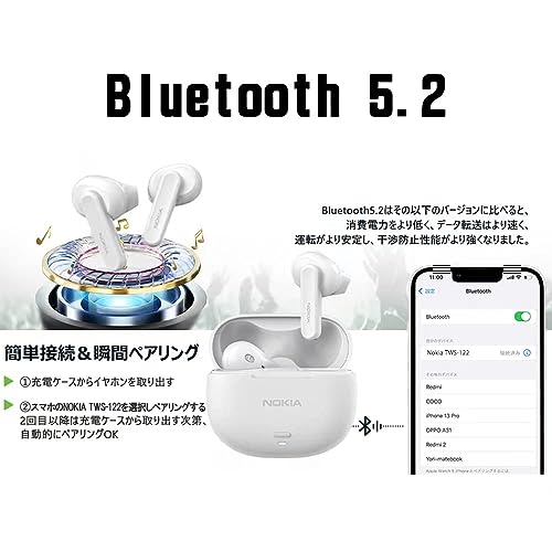 Nokia - سماعات أذن جو 2+ بخاصية تقليل الضوضاء المحيطة وترو وايرليس 122 بلون أسود، مقاس M من نوكيا