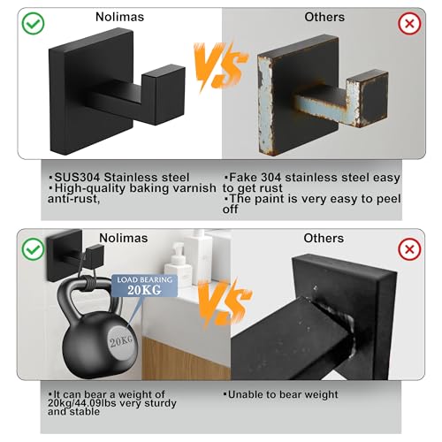 Nolimas - نوليماس علاقة منشفة سوداء غير لامعة من الستانلس ستيل للحمام مقاومة للصدا لتعليق الملابس والمعاطف تثبت على الحائط ومرحاض والمطبخ أسود مطفي الحد الأقصى للوزن الموصى به: 10.0 كيلوجرام