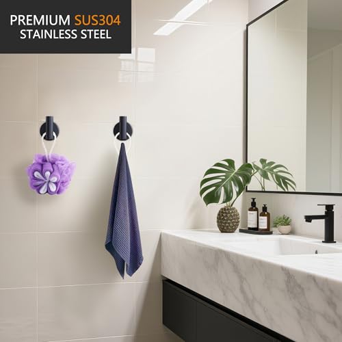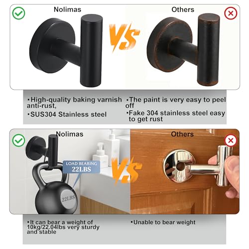 Nolimas - نوليماس خطاف لتعليق المناشف والمعاطف من الستانلس ستيل SUS304 بلون اسود غير لامع للحمام والخزانة والروب يثبت على الحائط بتصميم دائري شديد التحمل للمطبخ قطعتين الحد الأقصى للوزن الموصى به: 10.0 كيلوجرام