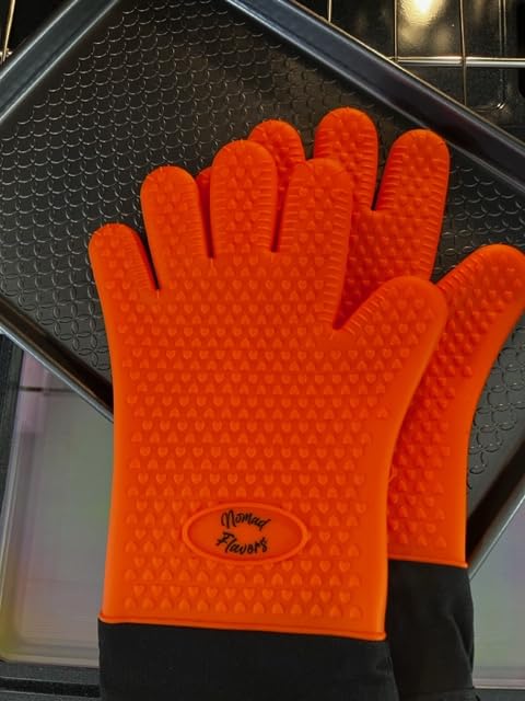 NOMAD FLAVORS - قفازات مقاومة للحرارة للشواء/ الفرن من نوماد فلافورز- للتعامل مع الطعام الساخن مباشرة او اخماد الشواية/الحفرة او الفرن او المقلاية. القفازات الرائعة مقاومة للماء