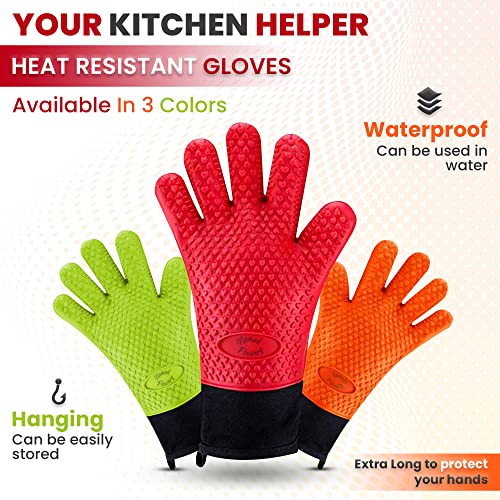 - مقاومة للحرارة حتى 500 فهرنهايت: قفازات الفرن والشواية المصنوعة من السيليكون تحمي يديك وذراعيك من الحرارة والبخار والشحوم أثناء الطهي أو الشواء