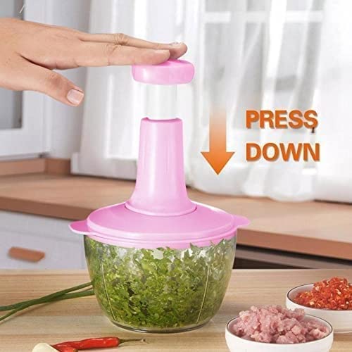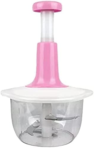Generic - قطاعة خضروات يدوية محضر طعام غير كهربائي وخلاط بشفرات مصنوعة من الستانلس ستيل اداة تدوير للسلطة ومحضر يدوي ومقطر لون بينك زهري