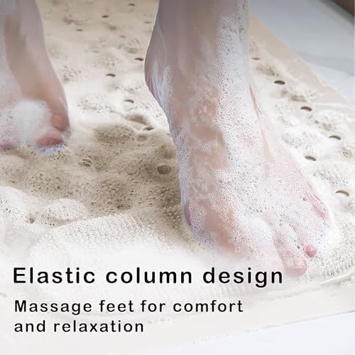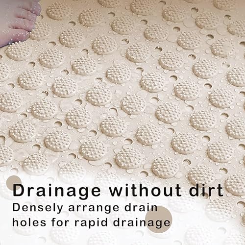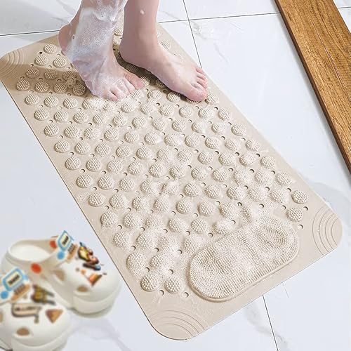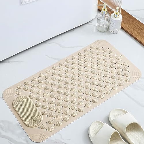 Generic - دواسة استحمام مانعة للانزلاق مع فرشاة مدمجة لفرك وتدليك القدمين – سجادة بانيو آمن مزود بفتحات تصريف وملمس فقاعات للتدليك – مقاوم للعفن وسريع الجفاف (بيج)