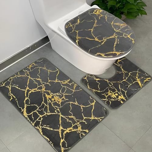 Generic - سجادات حمام غير قابلة للانزلاق - نمط رخامي معاصر مع غطاء مقعد المرحاض، إكسسوارات قابلة للغسل مكونة من 3 قطع باللون الذهبي المذهل لإطلالة حمام متطورة ( متاح لون ازرق )