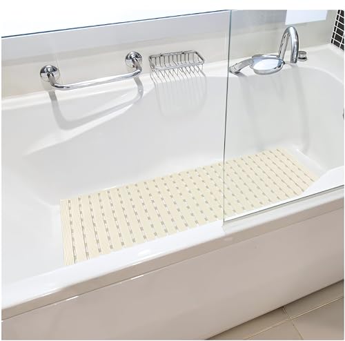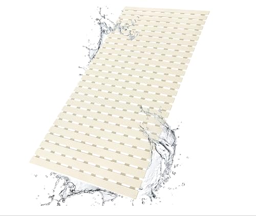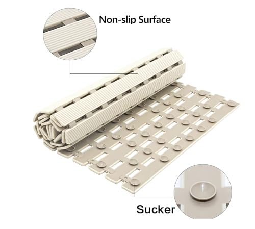 Generic - سجادة بانيو ودش مانعة للانزلاق مقاس 40×70 سم - دواسة استحمام بأكواب شفط قوية لتثبيت محكم، تصميم بفتحات لتصريف المياه سريع الجفاف، قابلة للقص لتناسب مساحتك، سطح مريح للقدمين (بيج)