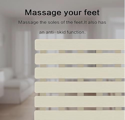 - تصميم مريح وتدليك للقدمين: السطح العلوي يحتوي على شرائط مطاطية بارزة توفر ملمساً مريحاً وتعمل كتدليك لطيف لباطن القدم أثناء الاستحمام، مع توفير احتكاك إضافي لمنع الانزلاق.