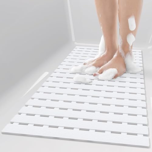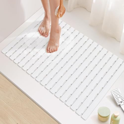 Generic - دواسة حوض استحمام مضادة للانزلاق بفتحات تصريف - تصميم عملي وسهلة التنظيف (ابيض)