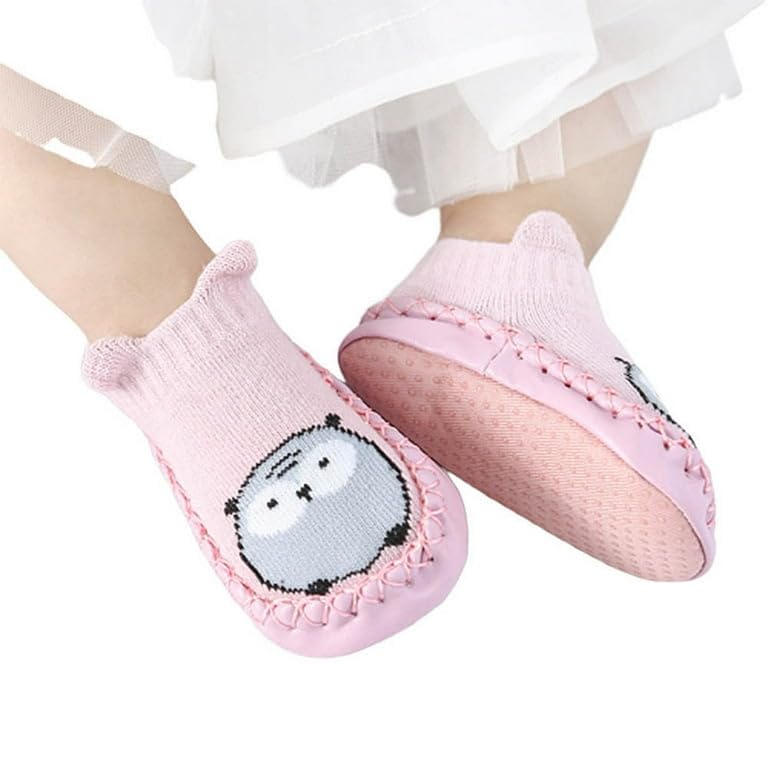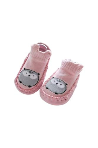Generic - حذاء مشي للأطفال بشراب، مضاد للانزلاق بقاعدة مطاطية مصنوعة من الجلد الناعم - حذاء رياضي للأطفال (الأولاد والبنات) بأشكال كرتونية (وردي، مقاس 11 سم (لعمر من 6 إلى 12 شهر))
