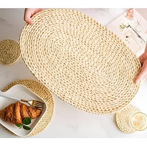 Generic - قاعدة اكواب مضادة للانزلاق - تصميم بيضاوي سميك منسوج بابعاد 30 × 45 سم، مصنوعة من قشر الذرة المستدام، توفر مقاومة للحرارة وتمنع الانزلاق لحماية آمنة وجذابة للطاولة