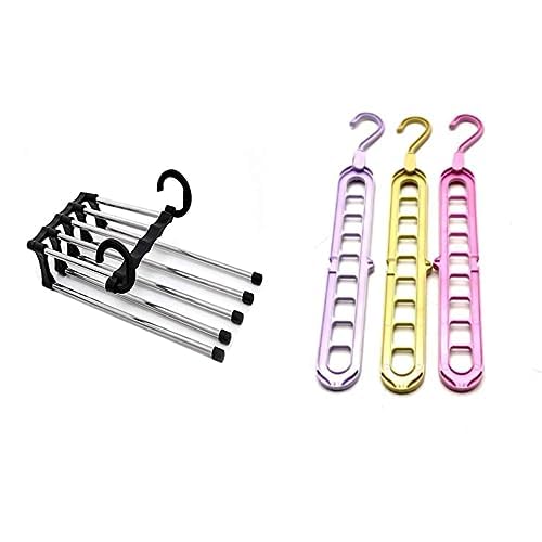 Generic - رف تخزين للبنطلونات قابل للتعديل متعدد الطبقات غير قابل للانزلاق من الستانلس ستيل(متعدد الالوان) + شماعات متعددة الالوان 3 قطع