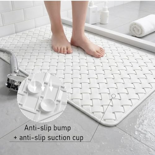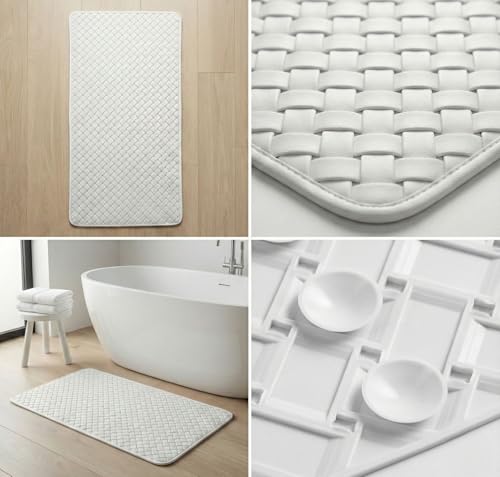 Generic - دواسة حمام PVC مانعة للانزلاق مقاس ٧٥ × ٣٥ سم مع أكواب شفط – تصريف سريع للمياه وسهلة الغسيل (ابيض)