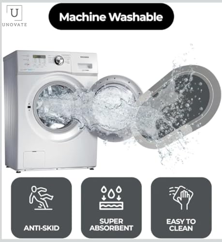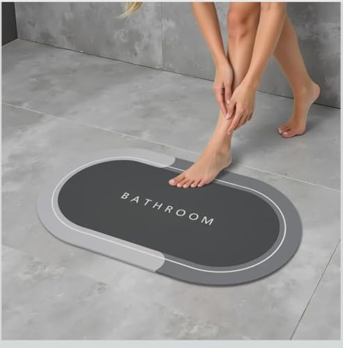 - تصميم عصري وأنيق: دواسة حمام بيضاوية الشكل بتصميم كلاسيكي عصري مع كلمة BATHROOM المطبوعة، تضيف لمسة جمالية راقية لديكور الحمام