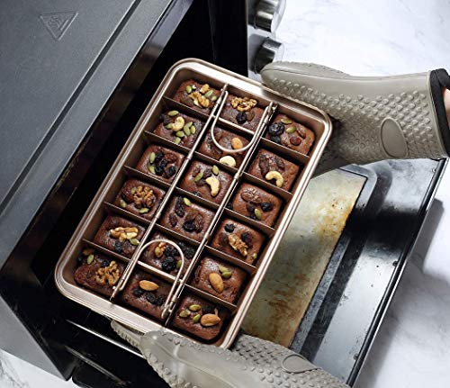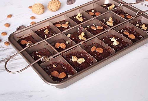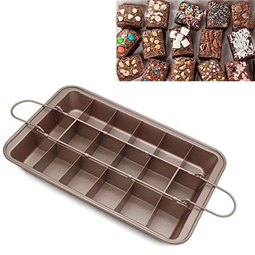 Namart - صينية خبز البراوني غير لاصقة مصنوعة من الصلب الكربوني عالي الجودة مع فواصل بتصميم شبكي بعدد 18 قطعة للخبز في الفرن اواني الكيك اداة تقطيع ذهبي فاتح صلب الكربون نامارت، صلب عالي الكربون