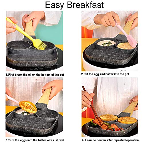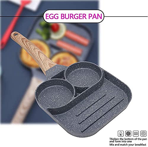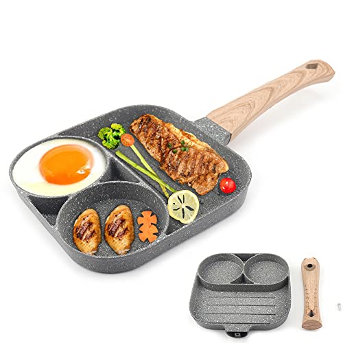 Generic - وعاء طبخ غير لاصق للبيض اومليت مقسم - مقلاة شواء - الكل في واحد للافطار 3 أقسام مربعة للشواء - مقاس 16 الألومنيوم رمادي