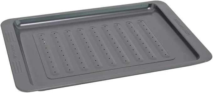 - جزء سفلي منقوش بفتحات للهواء - يعزز تدفق الهواء للحصول على نتائج أكثر هشاشة ومطبوخة بالتساوي دون احتراق أو التصاق.