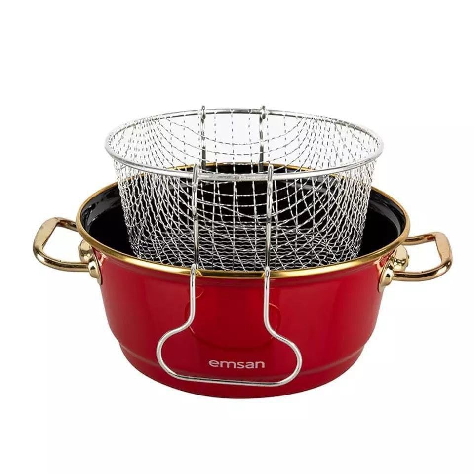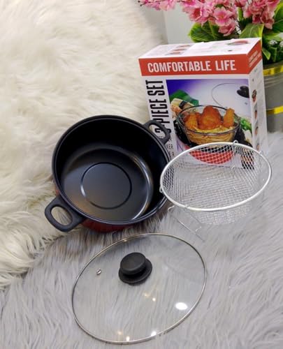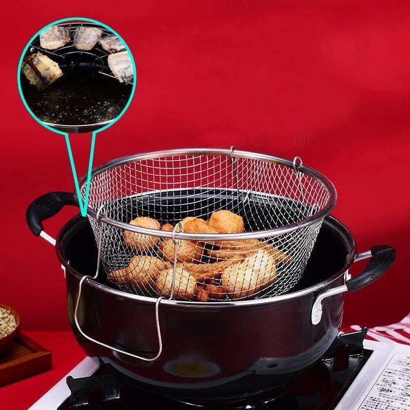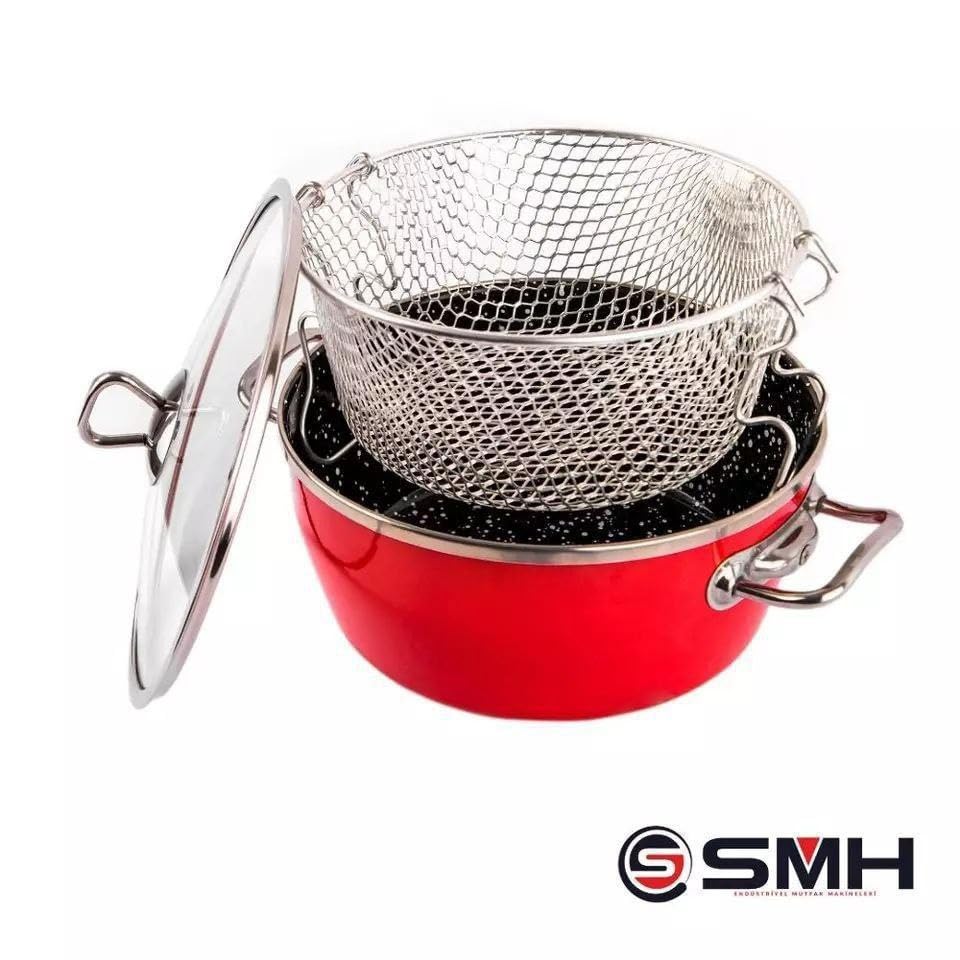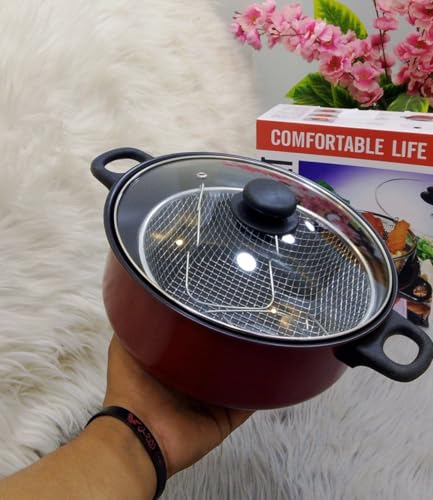 Generic - مقلاة عميقة غير لاصقة مع سلة قلي من الستانلس ستيل وغطاء زجاجي، مقاس 28 سم، مقلاة عميقة غير قابلة للالتصاق مع سلة قلي ستانلس ستيل وغطاء زجاجي، مقاس 28 سم