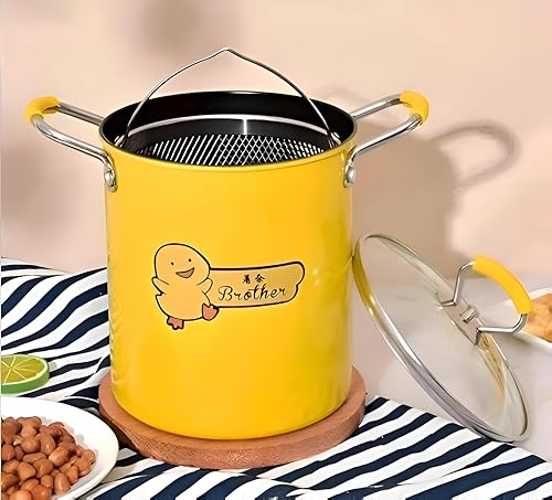 - يتميز هذا المنتج بمقلاة على شكل بطة مع غطاء زجاجي متين ومقاوم للحرارة وسلة سلكية من الستانلس ستيل، مما يوفر تصميمًا فريدًا وممتعًا يعزز تجربة الطهي الخاصة بك مع ضمان السلامة وسهولة الاستخدام.