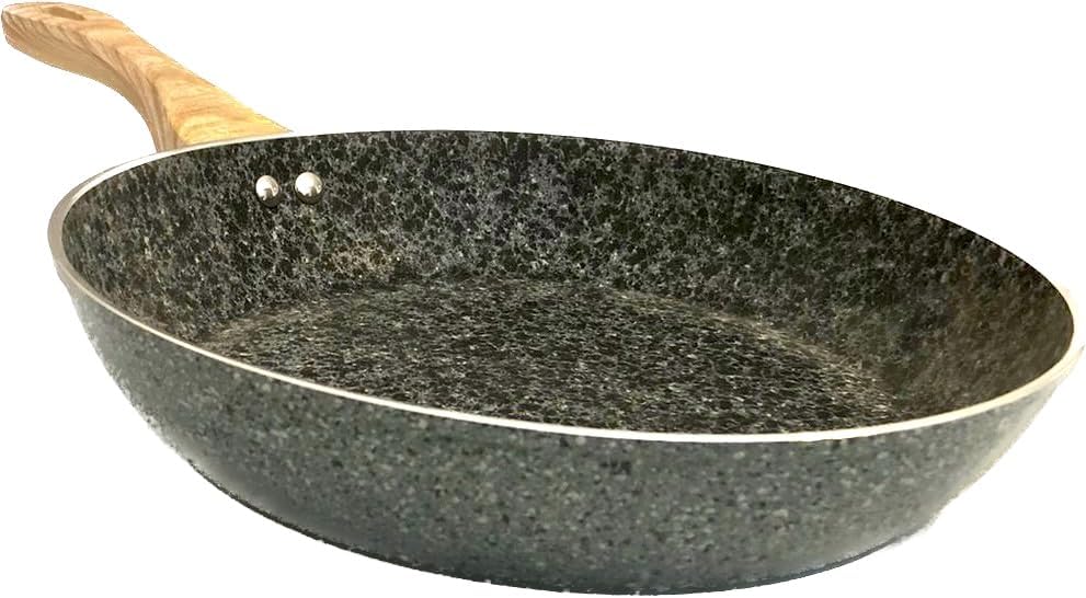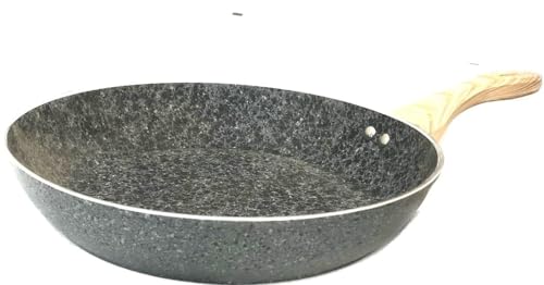 Generic - مقلاة غير لاصقة مقاس 28 سم جامبو بحافة فضية مطلية بالرخام والجرانيت وقاعدة توزيع الحرارة جرانيت مضادة للالتصاق تصميم رخامي قاعدة لتوزيع رمادي