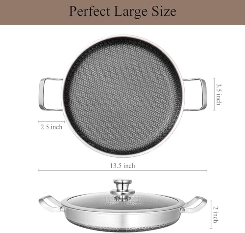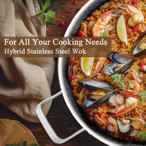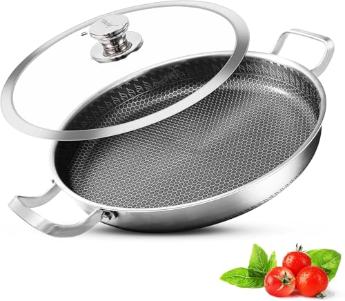 Generic - مقلاة غير لاصقة مع غطاء طهي، مقلاة من الفولاذ المقاوم للصدأ مقاس 33 سم، خالية من حمض بيرفلورو الاوكتانويك وآمنة للاستخدام في غسالة الصحون والفرن، مقلاة بايلا لموقد الحث والغاز والسيراميك والموقد