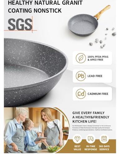 Generic - مقلاة جرانيت غير لاصقة قطر 30 سم مقاومة للخدش للتقشير مقبض خشبي جميع انواع المواقد والتقشر قطر30 رمادي