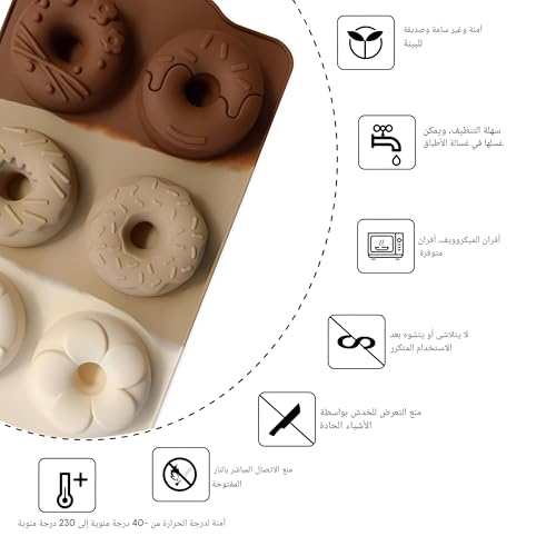 - سواء كنت تستضيف وجبة فطور وغداء أو تحضر حلوى خاصة أو تستمتع بمشروع خبز ممتع مع الأطفال، فإن قالب الدونات المصنوع من السيليكون هذا هو ضروري للمطبخ. متانتها وسهولة استخدامها تجعلها مفضلة لدى عشاق الخبز، حيث تتيح لك صنع أشكال متنوعة من الدونات بكل سهولة، بما في ذلك الحلقات الكلاسيكية، والأشكال القلبية، والنجوم الرائعة.