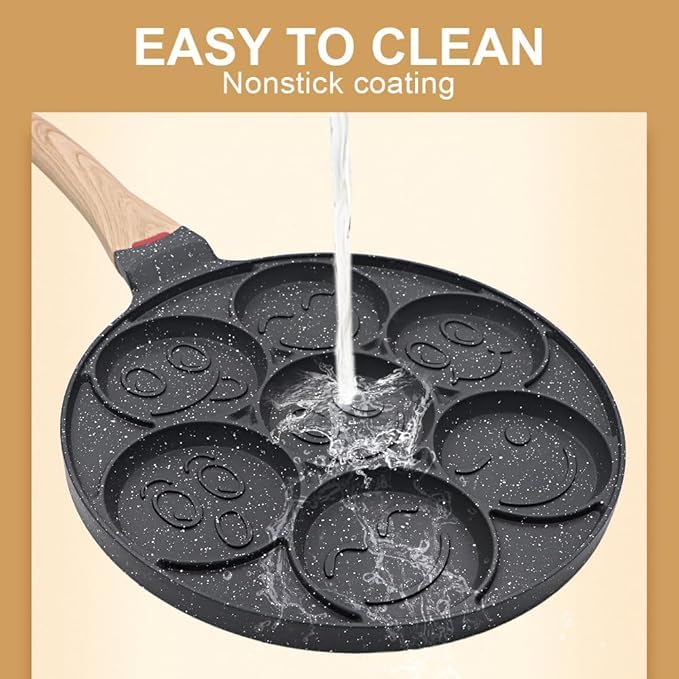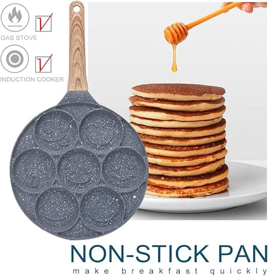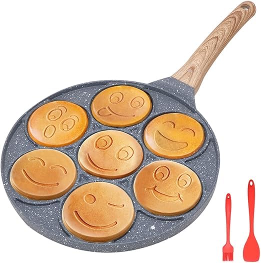 Generic - صينية بان كيك غير لاصقة مع تصميم صغير و7 اكواب وجه مبتسم - صانعة فطائر الكريب للاطفال