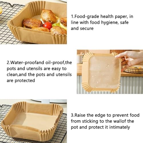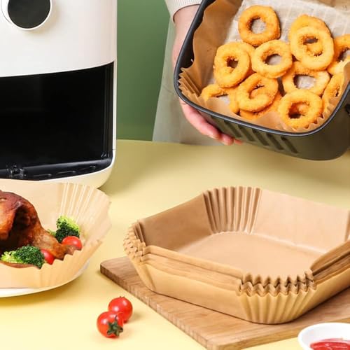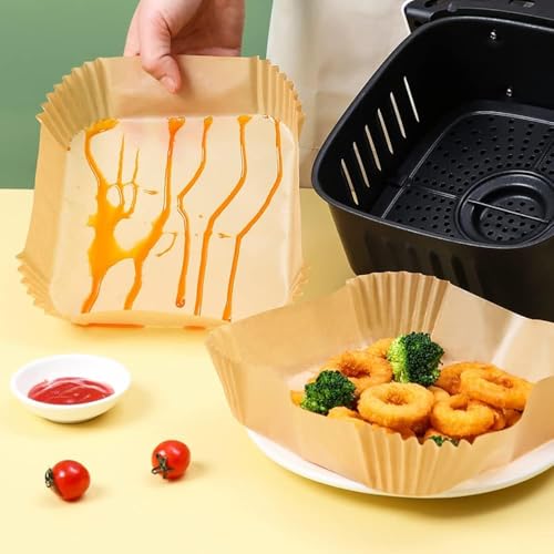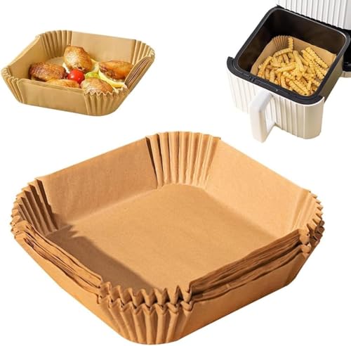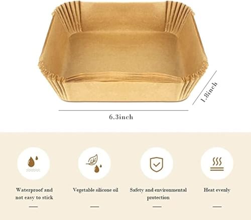 Spaceshoop - قالب ورقي غير لاصق للاستعمال مرة واحدة للفرن والمقلاة الهوائية - مربع، 6.3 انش، طبيعي (50 قطعة)