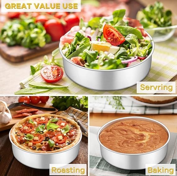 - مجموعة متكاملة من 3 أحجام لتنوع في الخبز: تتضمن هذه المجموعة ثلاث صواني كيك دائرية بأحجام متدرجة، مما يمنحكِ المرونة اللازمة لخبز كيكة واحدة بأي حجم، أو إنشاء كيكة متعددة الطبقات ذات مظهر احترافي بسهولة. هذا التنوع يفتح لكِ الأبواب لإعداد مجموعة واسعة من الوصفات، من الكيكات الصغيرة للاحتفالات الشخصية إلى الكيكات الكبيرة للمناسبات العائلية أو الحفلات، مع ضمان تناسق الطبقات ومظهرها الجمالي.