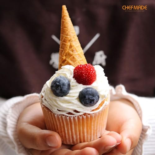 - الأبعاد: أكواب مافن ذات حجم قياسي يبلغ قطرها حوالي 7 سم، مثالية للمافن والكب كيك ذات الحجم العادي.