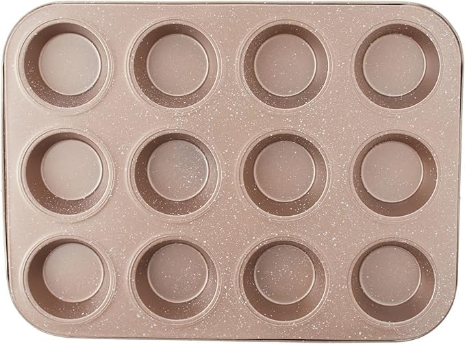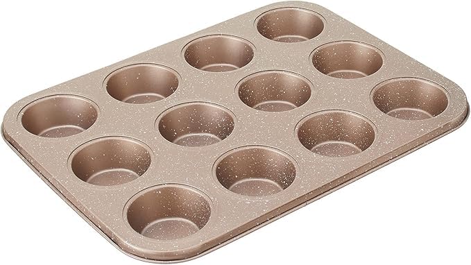 Generic - صينية مافن من الفولاذ المقاوم للصدأ مقاومة للالتصاق، 12 كوب، صينية خبز الكب كيك القياسية، لون ذهبي
